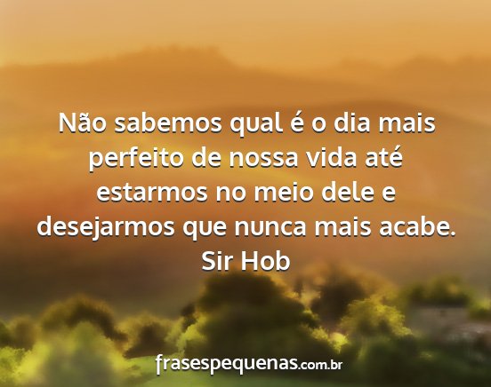 Não sabemos qual é o dia mais perfeito de nossa vida até estarmos no meio dele e desejarmos que nunca mais acabe.Sir Hob
