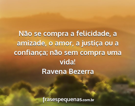 Não se compra a felicidade, a amizade, o amor, a justiça ou a confiança; não sem compra uma vida!Ravena Bezerra