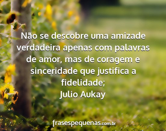Não se descobre uma amizade verdadeira apenas com palavras de amor, mas de coragem e sinceridade que justifica a fidelidade;Julio Aukay