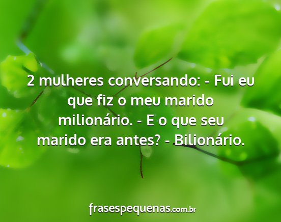 2 mulheres conversando: - Fui eu que fiz o meu marido milionário. - E o que seu marido era antes? - Bilionário.