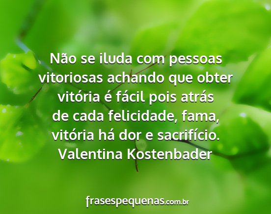 Não se iluda com pessoas vitoriosas achando que obter vitória é fácil pois atrás de cada felicidade, fama, vitória há dor e sacrifício.Valentina Kostenbader