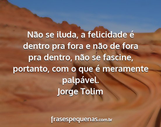 Não se iluda, a felicidade é dentro pra fora e não de fora pra dentro, não se fascine, portanto, com o que é meramente palpável.Jorge Tolim