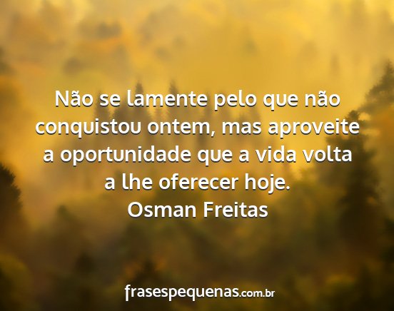 Não se lamente pelo que não conquistou ontem, mas aproveite a oportunidade que a vida volta a lhe oferecer hoje.Osman Freitas