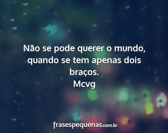 Não se pode querer o mundo, quando se tem apenas dois braços.