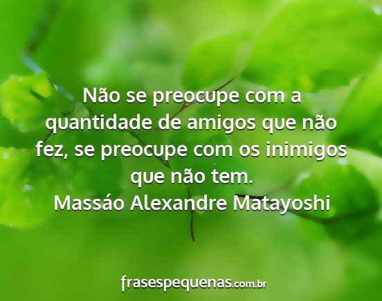 Não se preocupe com a quantidade de amigos que não fez, se preocupe com os inimigos que não tem.Massáo Alexandre Matayoshi