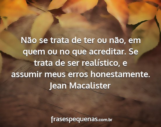 Não se trata de ter ou não, em quem ou no que acreditar. Se trata de ser realístico, e assumir meus erros honestamente.Jean Macalister