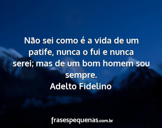 Não sei como é a vida de um patife, nunca o fui e nunca serei; mas de um bom homem sou sempre.Adelto Fidelino