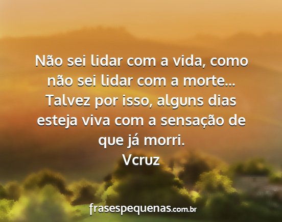 Não sei lidar com a vida, como não sei lidar com a morte... Talvez por isso, alguns dias esteja viva com a sensação de que já morri.Vcruz