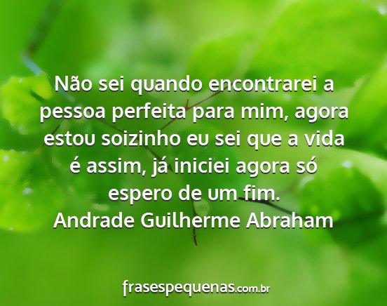 Não sei quando encontrarei a pessoa perfeita para mim, agora estou soizinho eu sei que a vida é assim, já iniciei agora só espero de um fim.Andrade Guilherme Abraham