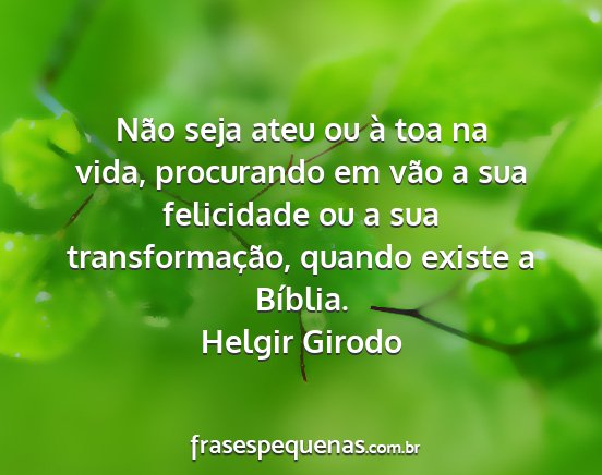 Não seja ateu ou à toa na vida, procurando em vão a sua felicidade ou a sua transformação, quando existe a Bíblia.Helgir Girodo