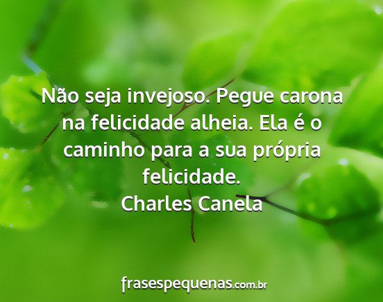 Não seja invejoso. Pegue carona na felicidade alheia. Ela é o caminho para a sua própria felicidade.Charles Canela