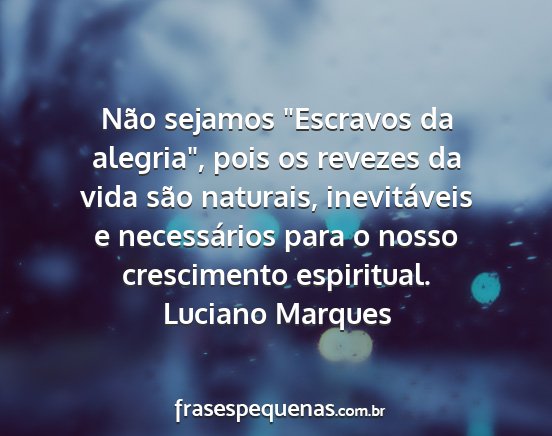 Não sejamos "Escravos da alegria", pois os revezes da vida são naturais, inevitáveis e necessários para o nosso crescimento espiritual.Luciano Marques