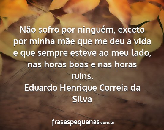 Não sofro por ninguém, exceto por minha mãe que me deu a vida e que sempre esteve ao meu lado, nas horas boas e nas horas ruins.Eduardo Henrique Correia da Silva