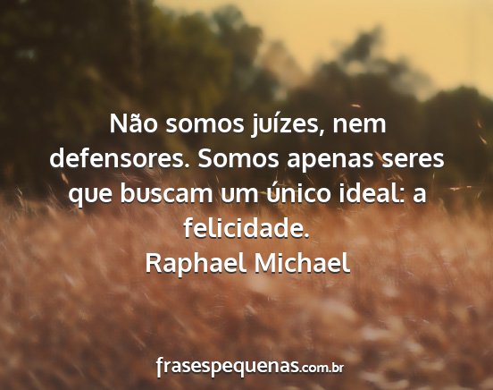 Não somos juízes, nem defensores. Somos apenas seres que buscam um único ideal: a felicidade.Raphael Michael