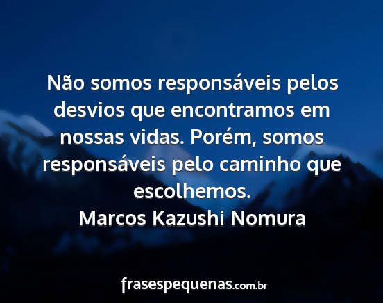 Não somos responsáveis pelos desvios que encontramos em nossas vidas. Porém, somos responsáveis pelo caminho que escolhemos.Marcos Kazushi Nomura
