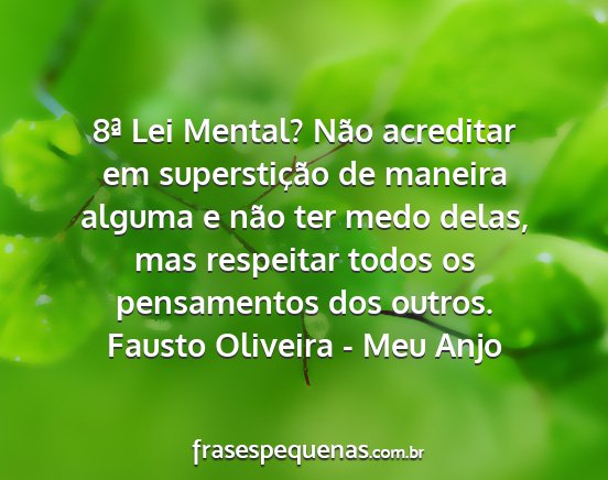 8ª Lei Mental? Não acreditar em superstição de maneira alguma e não ter medo delas, mas respeitar todos os pensamentos dos outros.Fausto Oliveira - Meu Anjo