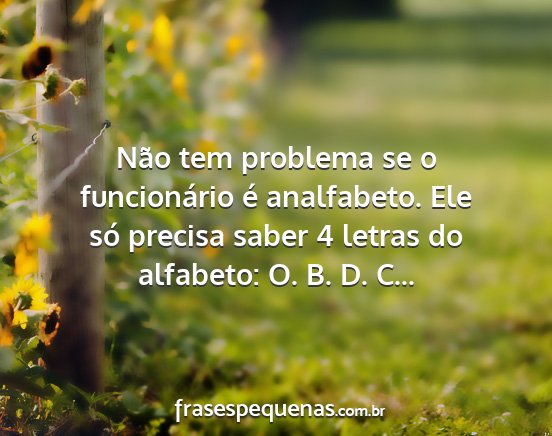Não tem problema se o funcionário é analfabeto. Ele só precisa saber 4 letras do alfabeto: O. B. D. C...