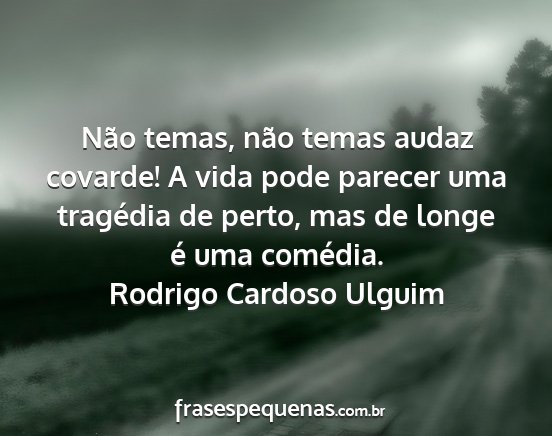 Não temas, não temas audaz covarde! A vida pode parecer uma tragédia de perto, mas de longe é uma comédia.Rodrigo Cardoso Ulguim