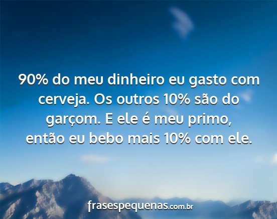 90% do meu dinheiro eu gasto com cerveja. Os outros 10% são do garçom. E ele é meu primo, então eu bebo mais 10% com ele.