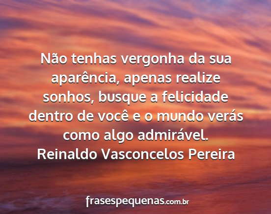 Não tenhas vergonha da sua aparência, apenas realize sonhos, busque a felicidade dentro de você e o mundo verás como algo admirável.Reinaldo Vasconcelos Pereira