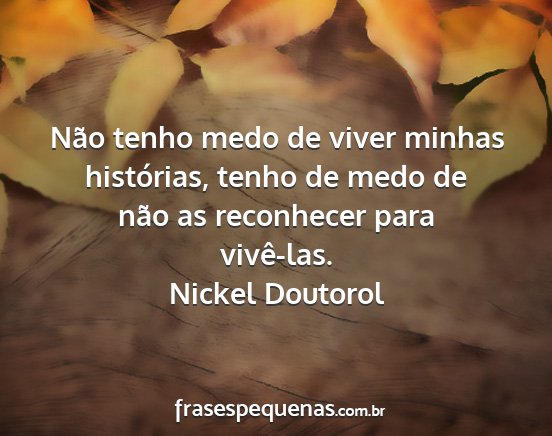 Não tenho medo de viver minhas histórias, tenho de medo de não as reconhecer para vivê-las.Nickel Doutorol