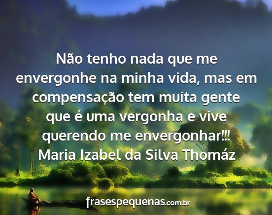 Não tenho nada que me envergonhe na minha vida, mas em compensação tem muita gente que é uma vergonha e vive querendo me envergonhar!!!Maria Izabel da Silva Thomáz