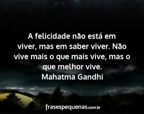 A felicidade não está em viver, mas em saber viver. Não vive mais o que mais vive, mas o que melhor vive.Mahatma Gandhi
