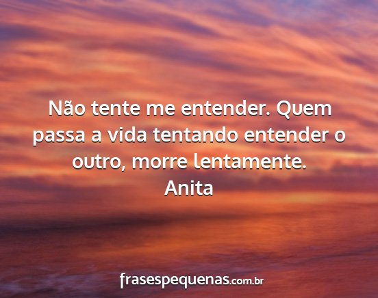 Não tente me entender. Quem passa a vida tentando entender o outro, morre lentamente.