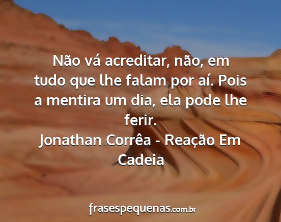 Não vá acreditar, não, em tudo que lhe falam por aí. Pois a mentira um dia, ela pode lhe ferir.Jonathan Corrêa - Reação Em Cadeia