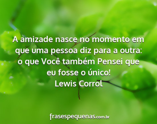 A amizade nasce no momento em que uma pessoa diz para a outra: o que Você também Pensei que eu fosse o único!Lewis Corrol