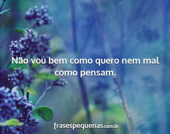 Não vou bem como quero nem mal como pensam.