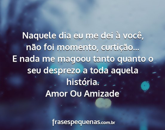 Naquele dia eu me dei à você, não foi momento, curtição... E nada me magoou tanto quanto o seu desprezo a toda aquela história.Amor Ou Amizade