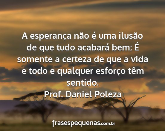 A esperança não é uma ilusão de que tudo acabará bem; É somente a certeza de que a vida e todo e qualquer esforço têm sentido.Prof. Daniel Poleza
