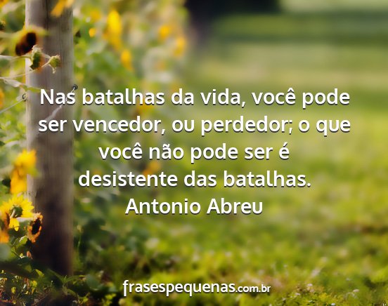 Nas batalhas da vida, você pode ser vencedor, ou perdedor; o que você não pode ser é desistente das batalhas.Antonio Abreu
