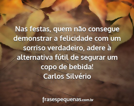 Nas festas, quem não consegue demonstrar a felicidade com um sorriso verdadeiro, adere à alternativa fútil de segurar um copo de bebida!Carlos Silvério