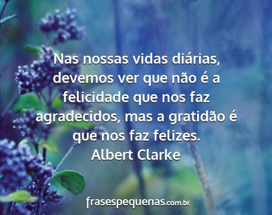 Nas nossas vidas diárias, devemos ver que não é a felicidade que nos faz agradecidos, mas a gratidão é que nos faz felizes.Albert Clarke