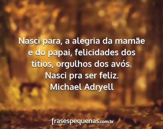 Nasci para, a alegria da mamãe e do papai, felicidades dos titios, orgulhos dos avós. Nasci pra ser feliz.Michael Adryell