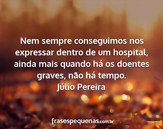 Nem sempre conseguimos nos expressar dentro de um hospital, ainda mais quando há os doentes graves, não há tempo.Júlio Pereira