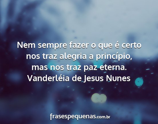 Nem sempre fazer o que é certo nos traz alegria a princípio, mas nos traz paz eterna.Vanderléia de Jesus Nunes