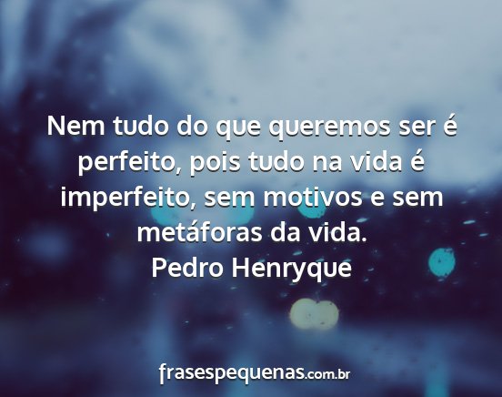 Nem tudo do que queremos ser é perfeito, pois tudo na vida é imperfeito, sem motivos e sem metáforas da vida.Pedro Henryque