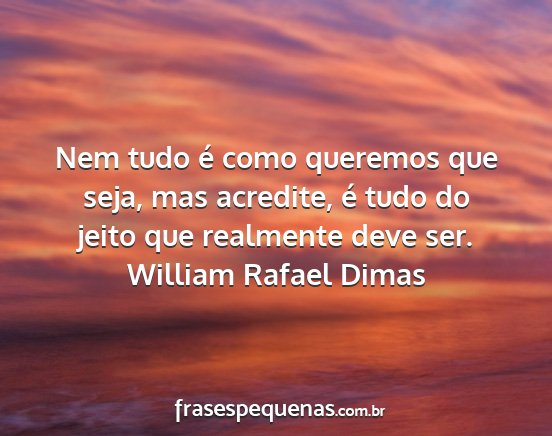 Nem tudo é como queremos que seja, mas acredite, é tudo do jeito que realmente deve ser.William Rafael Dimas