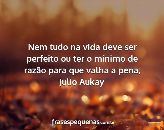 Nem tudo na vida deve ser perfeito ou ter o mínimo de razão para que valha a pena;
