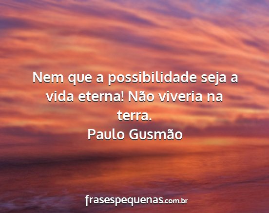 Nem que a possibilidade seja a vida eterna! Não viveria na terra.