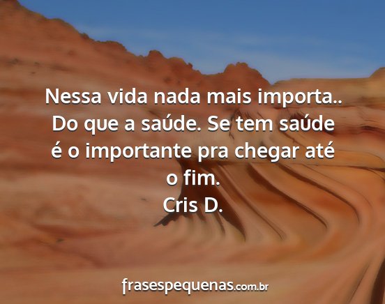 Nessa vida nada mais importa.. Do que a saúde. Se tem saúde é o importante pra chegar até o fim.Cris D.