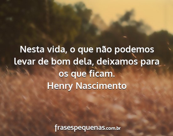 Nesta vida, o que não podemos levar de bom dela, deixamos para os que ficam.