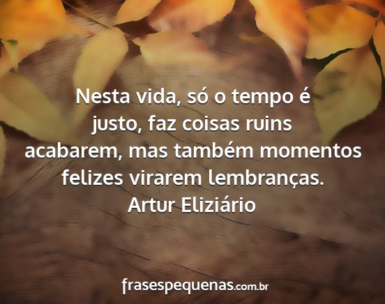 Nesta vida, só o tempo é justo, faz coisas ruins acabarem, mas também momentos felizes virarem lembranças.Artur Eliziário