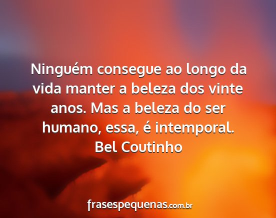 Ninguém consegue ao longo da vida manter a beleza dos vinte anos. Mas a beleza do ser humano, essa, é intemporal.Bel Coutinho