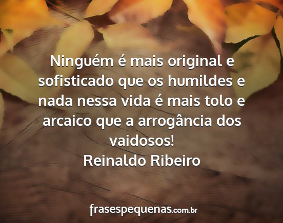Ninguém é mais original e sofisticado que os humildes e nada nessa vida é mais tolo e arcaico que a arrogância dos vaidosos!Reinaldo Ribeiro
