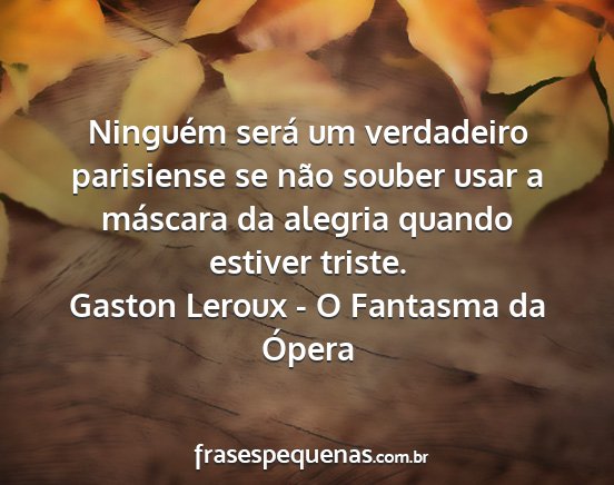 Ninguém será um verdadeiro parisiense se não souber usar a máscara da alegria quando estiver triste.Gaston Leroux - O Fantasma da Ópera