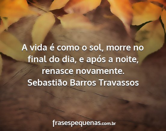 A vida é como o sol, morre no final do dia, e após a noite, renasce novamente.Sebastião Barros Travassos